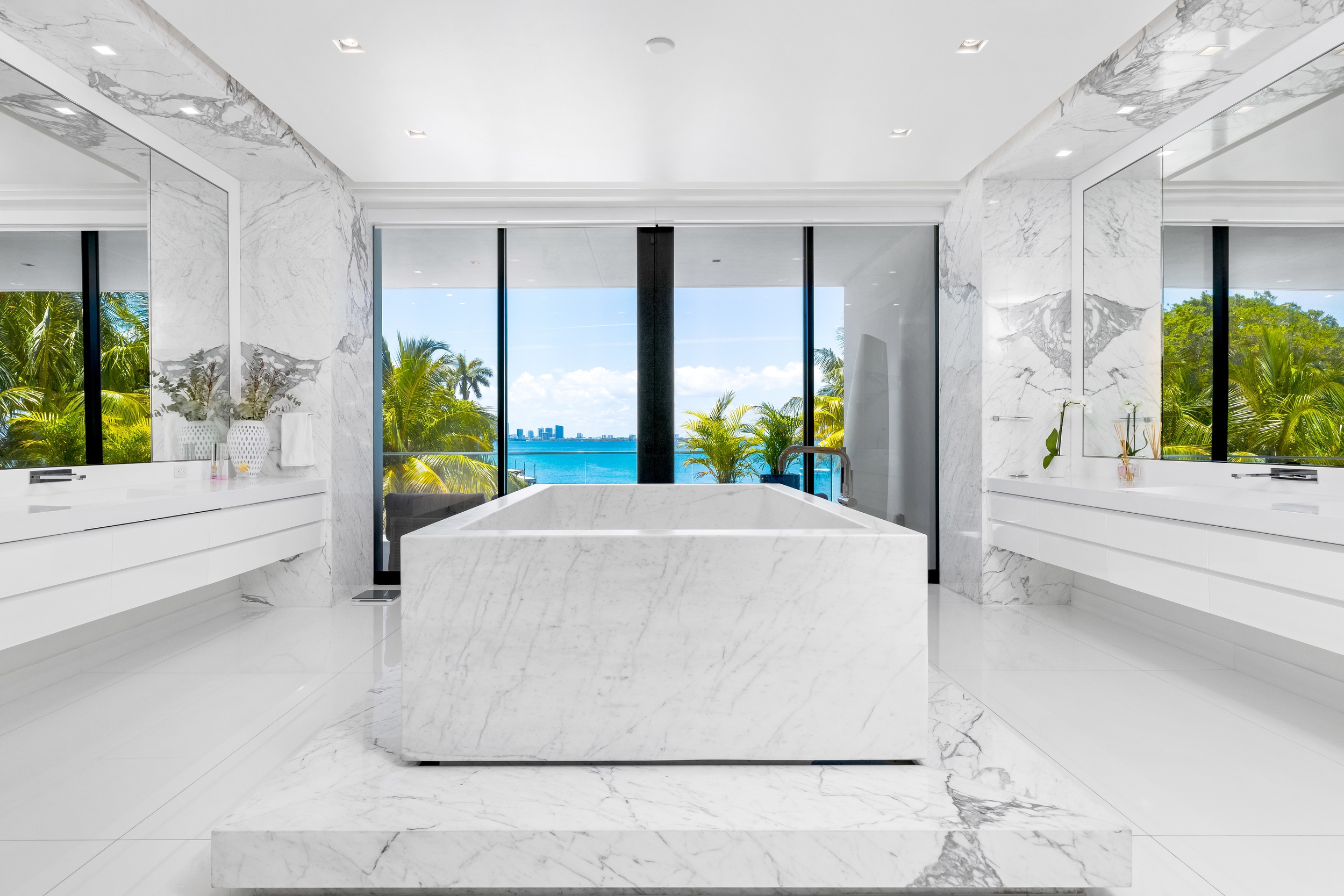 Discover the opportunity to reside on North Bay Road one of Miami’s most exclusive communities. This impressive eight-bedroom home, crafted by Zeb Jarosz, a distinguished architect known for his work with notable figures such as Michael Jordan, Matt Damon, and Dan Marino, exudes a resort-style ambiance. Encompassing nearly 17,000 SF across three levels, the residence has 105 feet of coveted waterfront and uninterrupted views of Biscayne Bay. The bright and spacious interiors, featuring 12-foot-high ceilings on the ground floor and 11-foot-high ceilings on the second floor, create expansive living spaces. The third floor unveils a unique full-width roof terrace with a secondary pool, while the home is adorned with exquisite finishes and tailored details. Miami Beach living at it’s best!